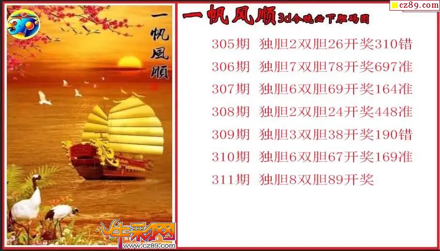 25年311期3d 一帆风顺今晚必下胆码图