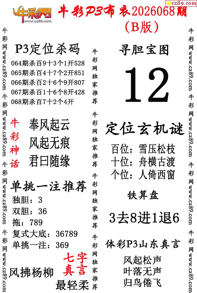 牛彩P3布衣26年068期AB版图谜(精华版)