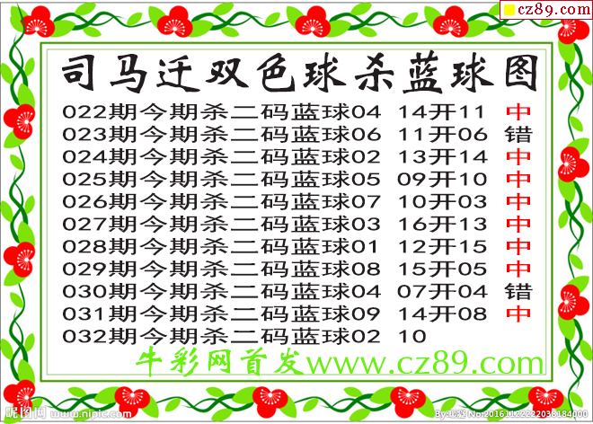 > 双色球032期 司马迁杀两码蓝球图谜 10中8
